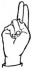 На ћирилици написано АНГЕЛИНА ГАЋЕ састоји се из 12 слова [?]. Исписано ћириличном једноручном азбуком за глувонеме: